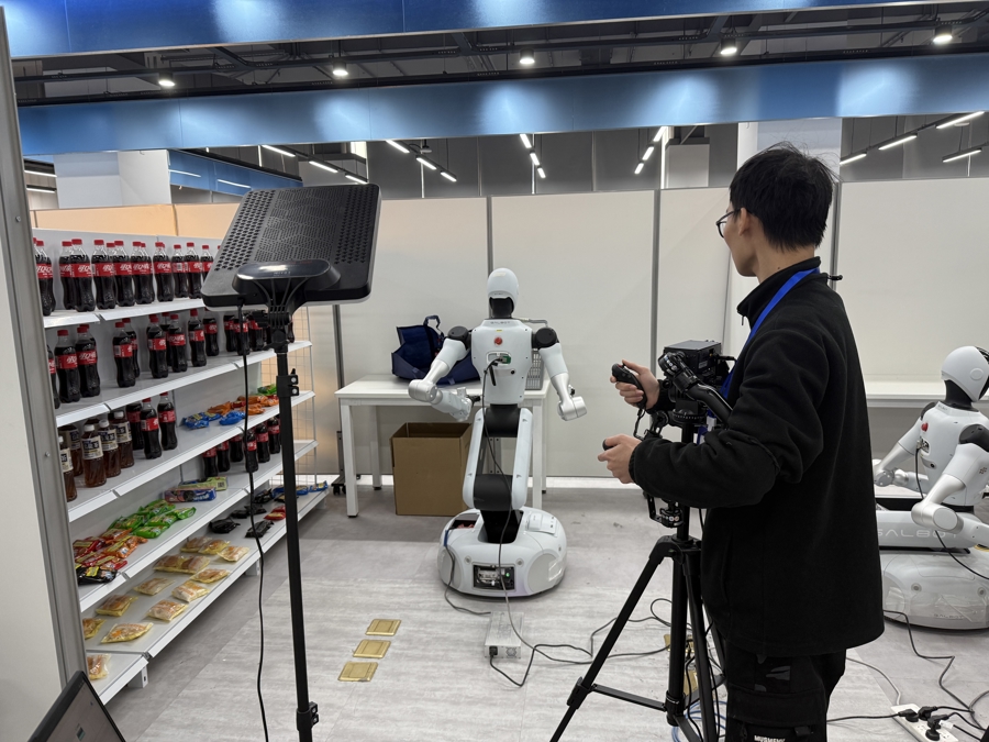 在合肥,有一所“机器东谈主大学”。具身智能机器东谈主在上岗前,要参加位于瑶海区长三角数字科技示范园的合肥市具身智能机器东谈主数据相聚领导场,学习炒菜作念饭、整理床铺、商品导购等妙技,一样由数据相聚员“手把手”教化。